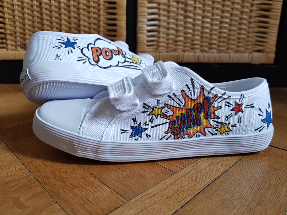 Poznámka: Malované obrázky jsou tepelně zafixovány. Boty je proto možné prát na 40°C.